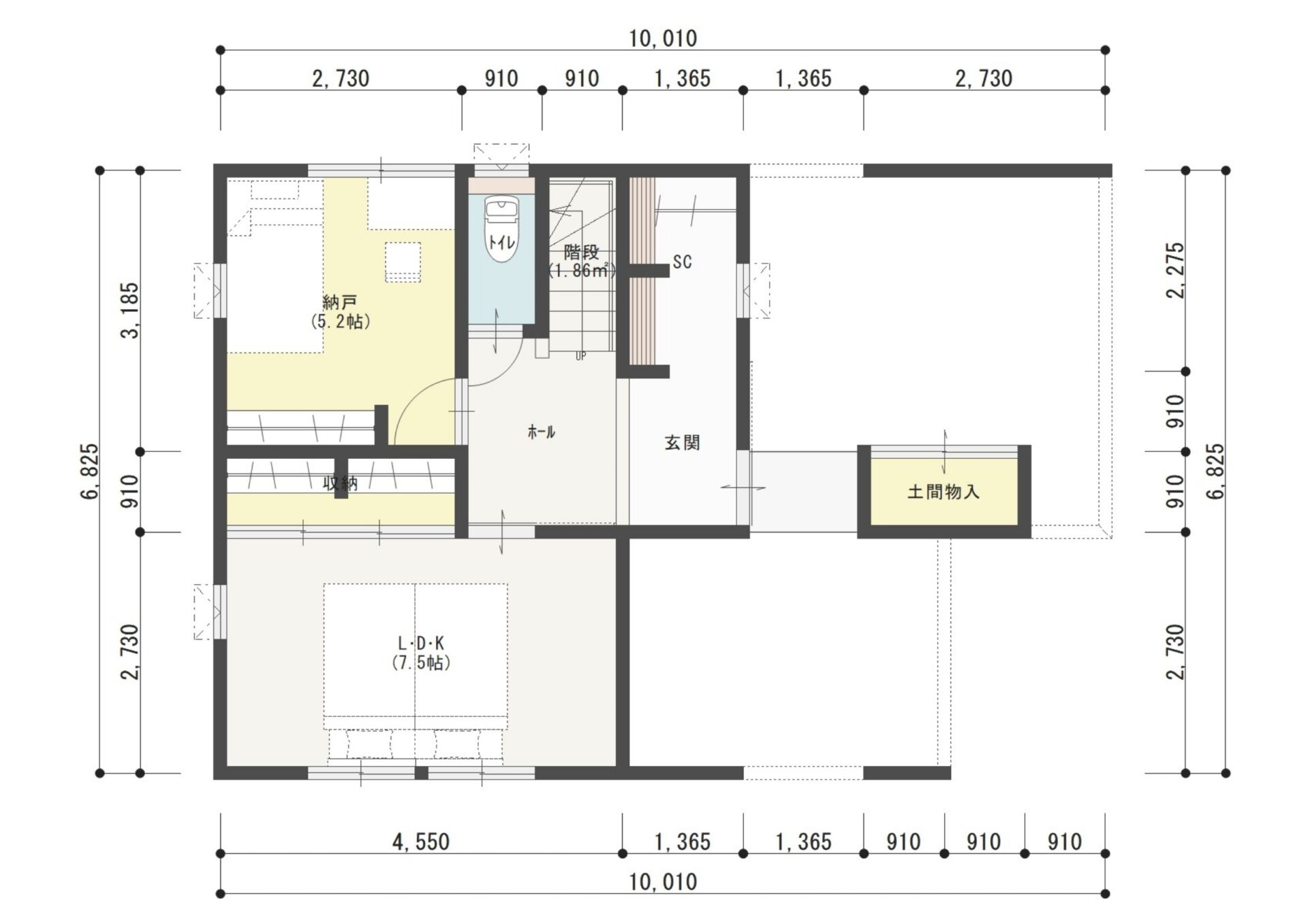 間取り 2LDK+S+納戸+外部収納+シューズクローク
